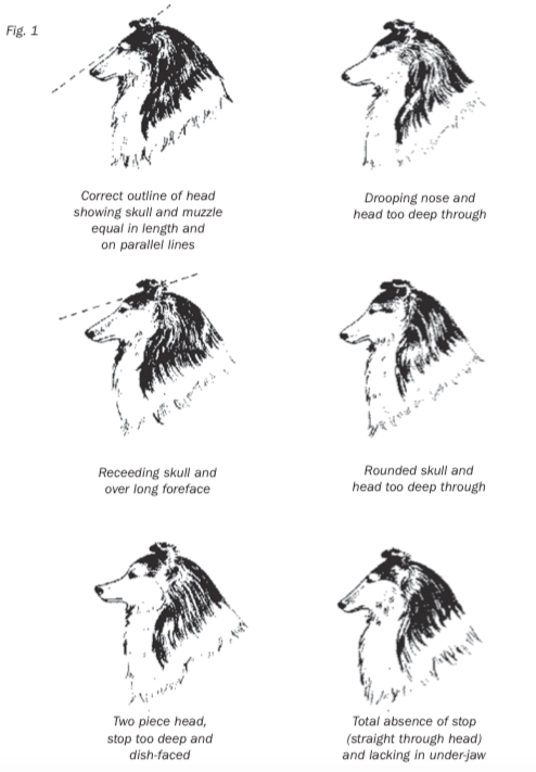 of the skull and muzzle, the placement, size, shape, and colour of the eyes, and the position, size and